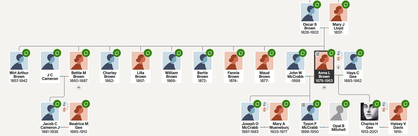 Who was Annie as a woman, a wife, a mother? The records and newspaper articles don’t tell us that—but we do know her name. Anna L. Brown. Annie L. McCrabb. Annie McCrabb Gee. Annie Lee Gee.