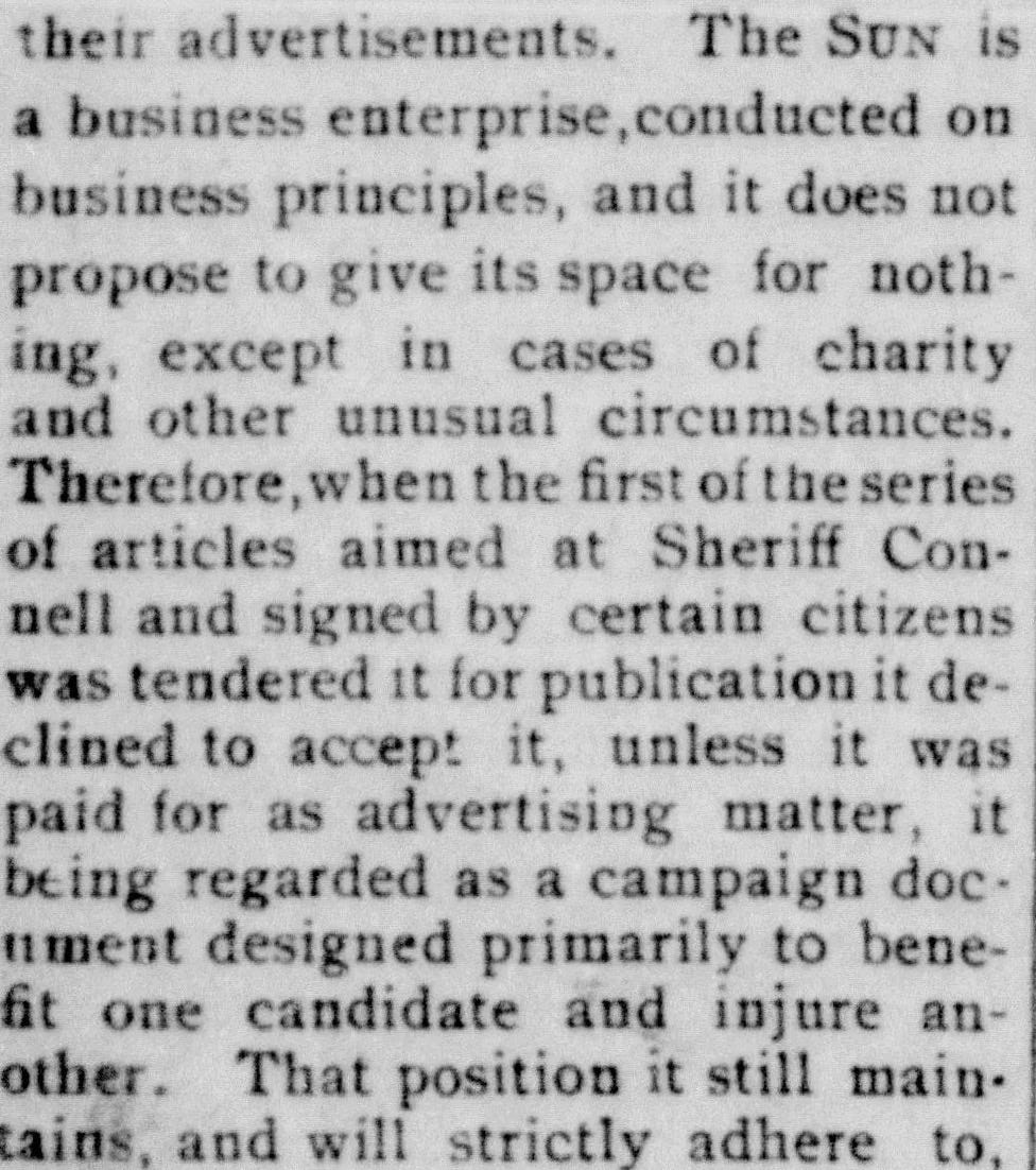 Here’s where it gets spicy. When the committee tried to place the same articles in the Sun, the Sun said sure… but you’ll have to pay for them as advertising.