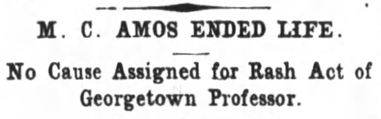 “M. C. Amos Ended Life: No Cause Assigned for Rash Act of Georgetown Professor,” Houston Post (Houston, Texas), 20 June 1911, Newspapers.com.